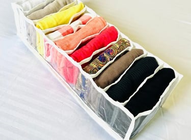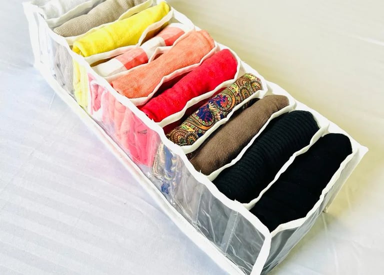 Mantém gavetas e prateleiras organizadas e facilitam a visualização das peças.
